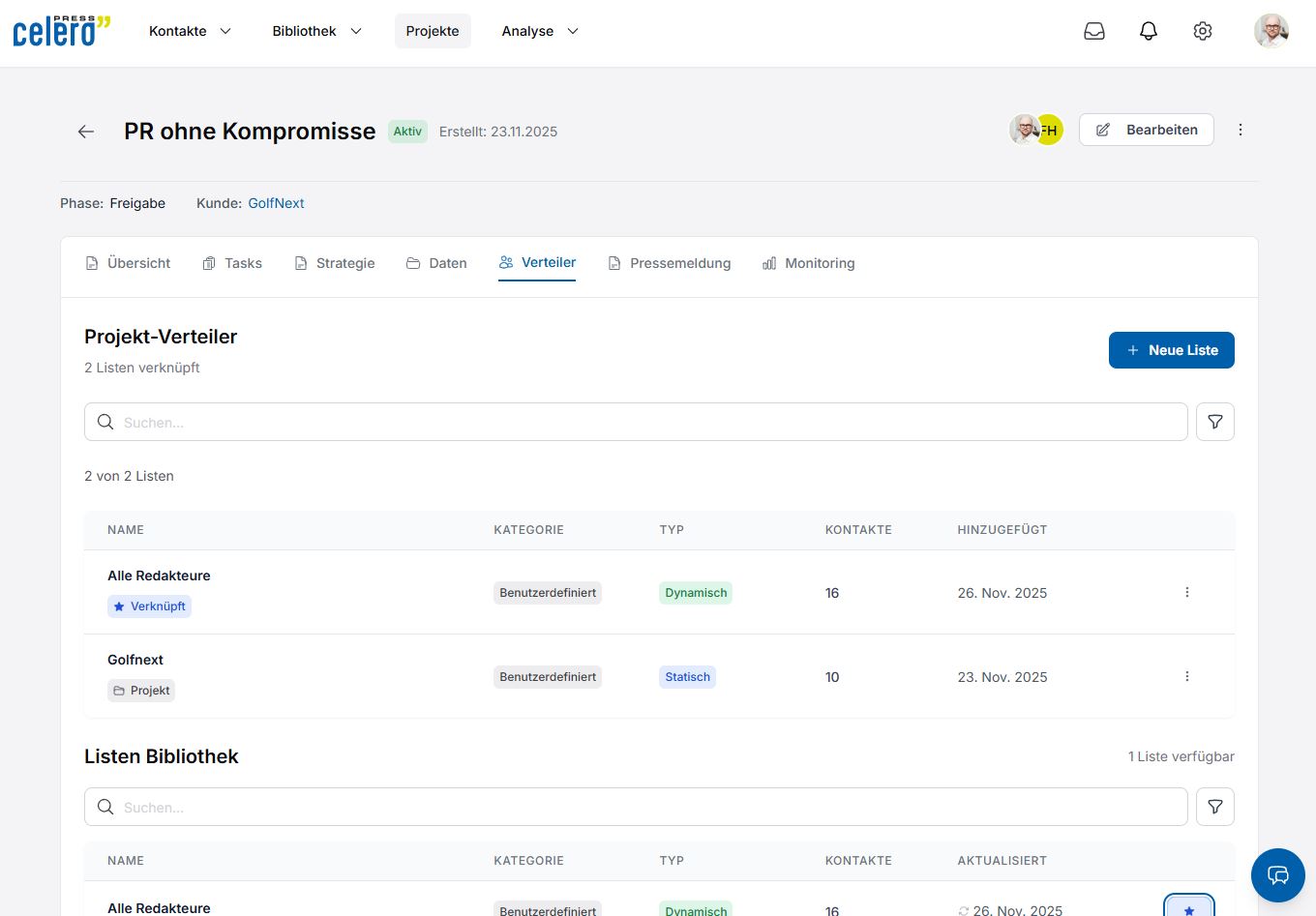 - Verwalten Sie Ihre Journalisten-Kontakte zentral und versenden Sie zielgerichtete Kampagnen.