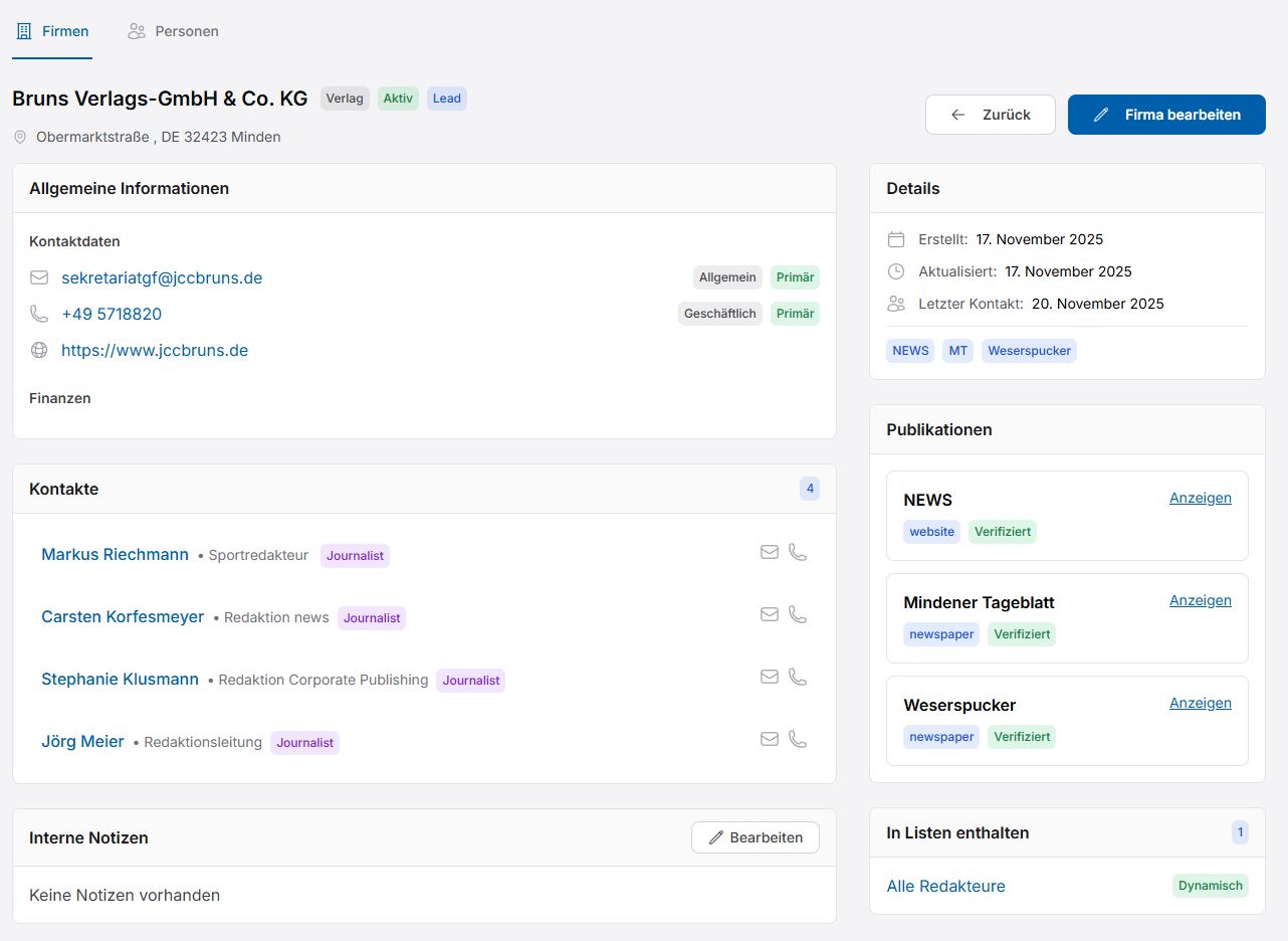 - Nutzen Sie unsere kuratierten Premium-Journalisten-Listen, dynamische Verteiler und automatisches Reply-Tracking.